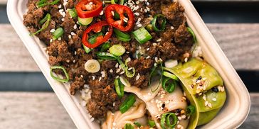 • Enlighten Your Tastebuds: Our fan-favourite 24-hour marinated beef mince nestled on a bed of fluffy steamed rice, with seasonal greens for company (Contains: Gluten, Soya)